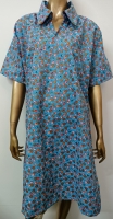 Purple Flowers Blue Leaves Shirt Sleeve Dress